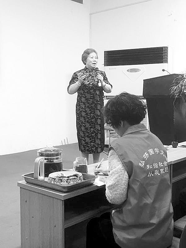 72岁的刘冰先生气质优雅、精神矍铄、声音洪亮。在演讲中,她联系实际、旁征博引,使在场的听众,尤其是女性听众懂得了如何做一名成功的女性、厚道的女性、知礼的女性,懂得了如何正确处理家庭、社会关系。在如何教育好孩子、教育好学生方面,她指出,现代女性不仅要沐浴在国学经典中做好孩子、学生的引路人,还要以身作则尽心尽力对待孩子、学生,把继承和发扬中华民族的传统美德作为义不容辞的责任和义务。一位姓王的女同志告诉记者:“刘冰先生传播圣贤文化,弘扬国学精神,为我们阐述了国学经典中蕴含的教育智慧及传承国学对培育青少年的深远意义。听了以后对我触动很大,今后我要认真感受国学的魅力,当一名合格的、称职的女性。”