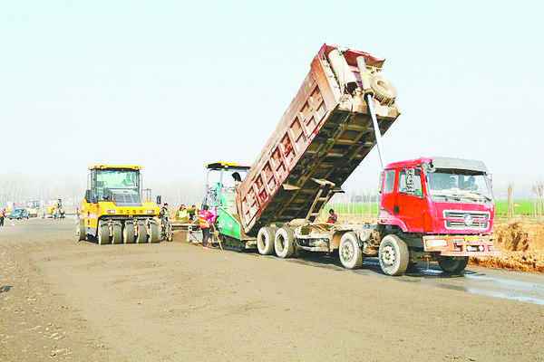 3月29日,在项城市西环路项目施工现场,运输车辆来回穿梭,压路机正在紧张作业。据了解,西环路施工路段全长2.4公里。 记者杨光林 通讯员王洁石 摄