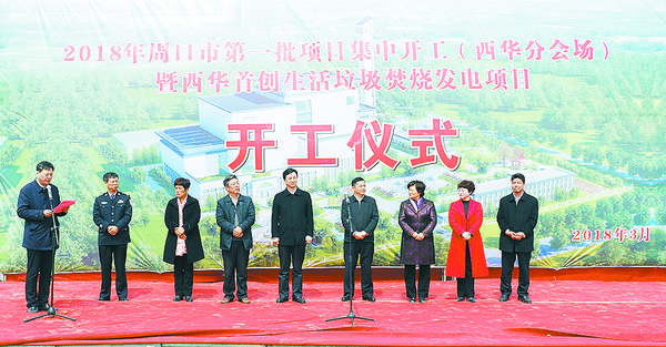本报讯(记者 张猛 文/图)3月21日,2018年周口市第一批项目集中开工(西华分会场)暨西华首创生活垃圾焚烧发电项目开工仪式举行。县领导林鸿嘉、田庆杰、郭峰、王献超、郭继红、张翠霞、毛茹等出席开工仪式,各乡镇办事处、县直各单位主要负责同志参加开工仪式。开工仪式由县委常委、常务副县长王献超主持。