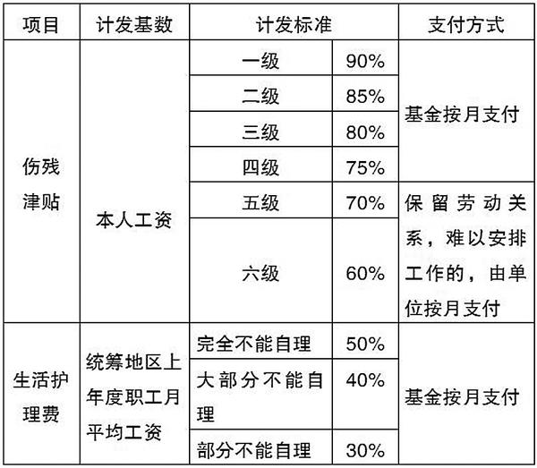工伤医疗终结后定期发放的待遇(详见表二)。