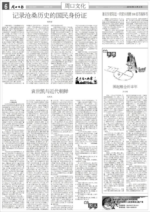 在周口市档案馆里,保存着一批民国时期的国民身份证。这些身份证的材质多采用硬质纸张,格局略有不同,规格10~13厘米宽,7~9厘米高。民国时期的身份证上可以看到的信息十分丰富:不仅有照片、姓名、性别、出生年月日、住址等现代身份证上显示的信息,还有教育程度、公民资格、从事职业、家属基本情况等与现在户口簿功能相似的项目,甚至有指纹、身长、面貌和特征这些特殊项目。指纹分左右拇指分别描绘在对应的栏目里,同时对持证人的十指用“箕”“斗”予以表示,“斗”纹(指纹成圆圈形,没有开口)划○,“箕”纹(指纹不是圆圈状,有开口)划△或×;对身长要填清几尺几寸几分;面貌要注明脸型、肤色;特征栏要标出麻子、跛子、聋子、结巴等。