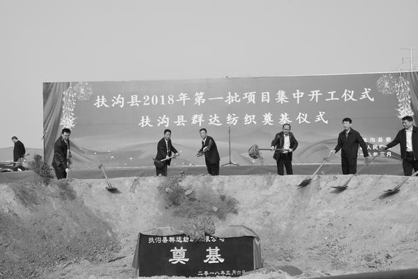 3月25日上午,扶沟县举行今年第一批项目集中开工仪式,群达纺织等10个项目集中开工。图为县领导和各项目负责人共同为开工项目奠基。 谢永静摄