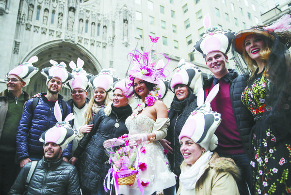 4月1日,在美国纽约,人们参加复活节花帽游行。 当日是西方传统节日复活节,人们头戴精心制作的花帽,在纽约第五大道参加一年一度的复活节游行。