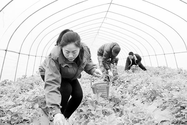 市人大代表杜俊玲创建的太康县城郊乡舒兰农场占地120亩,种植有多个草莓品种,吸引食客慕名前来采摘。同时,农场积极吸纳贫困户就业,使近300户贫困家庭稳定脱贫。图为游客日前在农场体验采摘乐。 记者 马治卫 通讯员 刘卫亚 摄