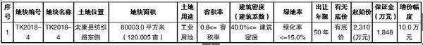 挂牌报价时间:TK2018-4地块: 2018年5月2日9∶00至2018年5月16日9∶00。挂牌网址:河南省国土资源网上交易系统(http://www.hngtjy.cn/home.jsp)。