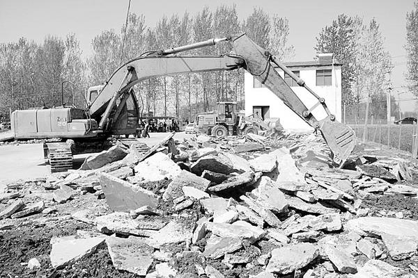 为坚决制止和查处违法用地和违法建设行为,确保18亿亩耕地红线,4月8日,商水县平店乡配合县国土局、县规划局依法对该乡雒庄村、文寨村、广投庄村、王老村等5处违法占地驾校练车场及附属违法建筑物进行强制拆除。