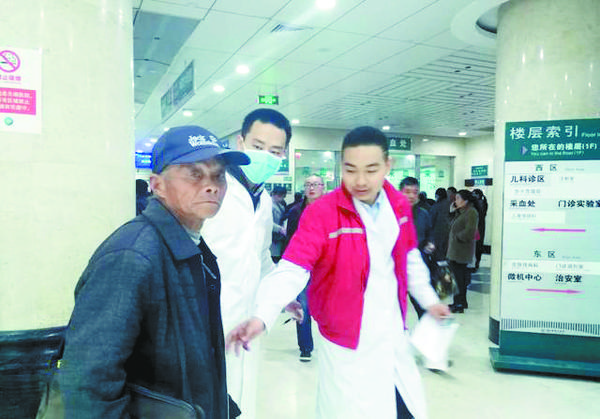 本报讯 4月5日,正在市中心医院内科门诊导诊的李义龙看到一位老人独自走进门诊大楼。按理说,这个年龄的老人到医院看病一般都有家人陪伴,而这位老人身边却没有人陪同。李义龙立即起身,走出导诊台,搀扶老人坐在椅子上,耐心询问老人情况。由于老人听力不好,沟通起来有点困难。见此情形,李义龙通知了陪检人员刘骐凯与郭宝成全程陪同老人看病。