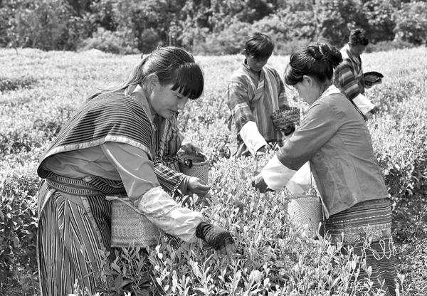 墨脱县背崩乡茶园的茶农正在采茶(4月7日摄)。