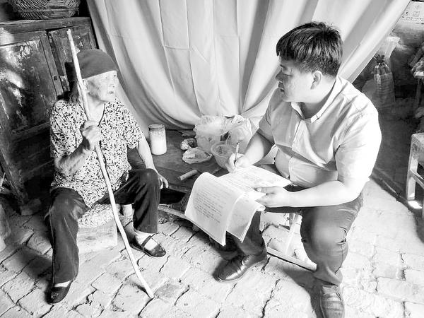 郸城县食药监局驻村工作队调整以来,创新思路,主动作为,夜以继日,全力奋斗,快速推进百日会战“整村推进、整体提升”工作。图为近日该局驻双楼乡王楼行政村第一书记在走访贫困群众。记者 卢好亮 摄