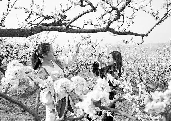万亩李子花开 4月17日,游客在卢龙县印庄乡段家沟村李子花盛开的果园内拍照。近日,河北省卢龙县的一万多亩李子花竞相绽放,呈现出一幅美丽画卷。新华社记者 杨世尧 摄