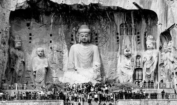 游客在洛阳龙门石窟参观(4月11日摄)。河南洛阳拥有5000多年文明史、4000多年城市史、1500多年建都史,有可移动文物近42万件(套)。近年来,洛阳依托丰厚的历史文化资源打造博物馆之都,目前建有博物馆66家,博物馆已成为古都的文化新地标。新华社发
