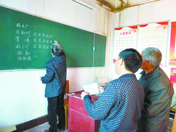 在村“两委”换届工作中,高寺镇实行“两推一选”百分制,村党支部党员、群众代表“一推”,镇党委委员“二推”,各占50分,共100分。截至目前,全镇26个村党支部推选出村党支部初步候选人122人,“两推”工作圆满结束。 记者杨光林 摄