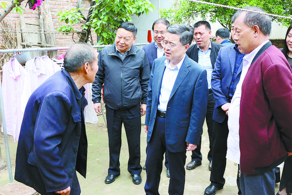 本报讯(记者 韦伟 文/图)4月25日,沈丘县委书记皇甫立新到白集镇检查指导脱贫攻坚工作。县委常委、县委办公室主杨所超,县政协副主席鹿槐生陪同检查。