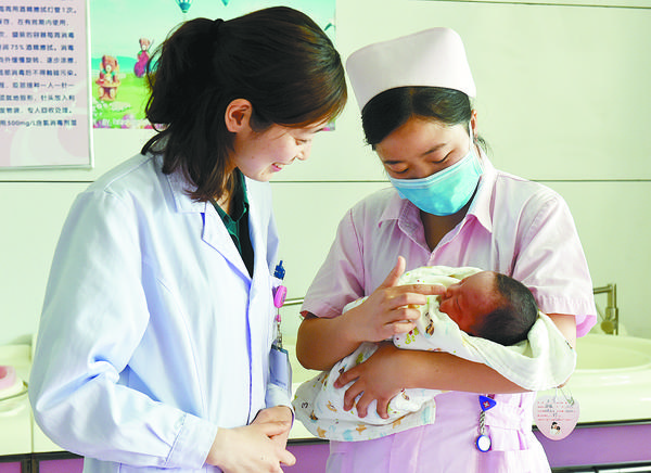 5月3日,在河南省人民医院产科病房,护士郭琳娜(右)为新生儿洗澡做准备。在河南省人民医院产科与新生儿重症监护室,一群年轻的医护人员奋战在一线,用青春的力量守护新的生命。