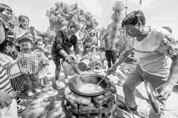 临近“立夏”节气,浙江省杭州市余杭区塘栖古镇丁山河村举行民俗迎“立夏”活动。活动内容包括包粽子、烧“野米饭”、制米塑等传统民俗。新华社记者 徐昱 摄