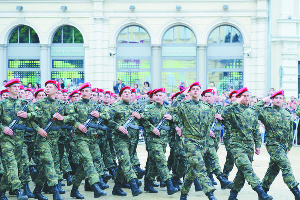 5月6日,在保加利亚首都索非亚,保加利亚士兵参加阅兵式。当日,保加利亚在首都索非亚举行盛大阅兵式,庆祝军队节。 新华社记者 战小漪 摄