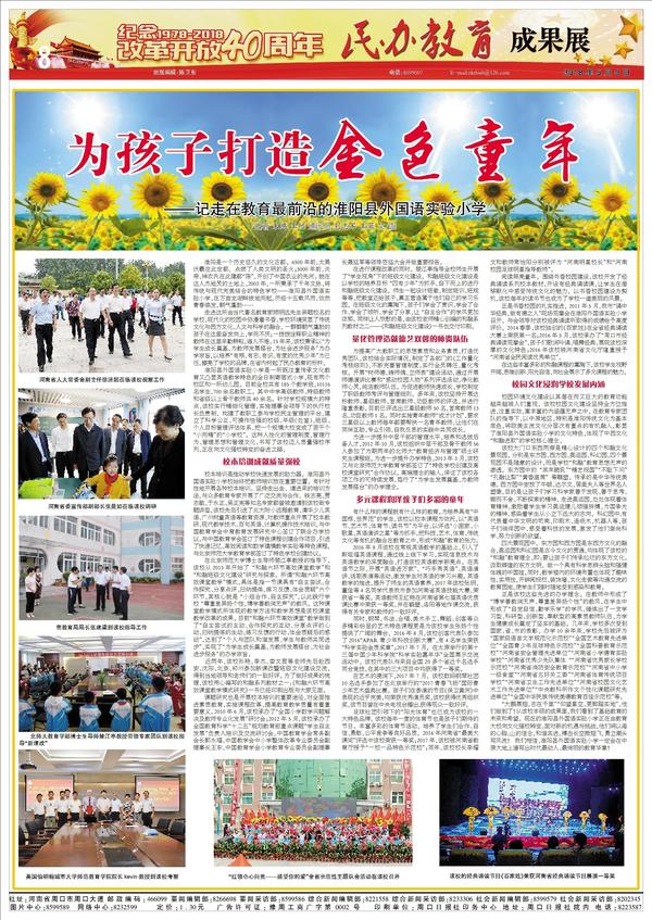 “大鹏展翅,志在千里”“仰望星空,更脚踏实地”,他们做到了!从该校丰硕的成果里,我们看到了基础教育的未来和希望。现在的淮阳县外国语实验小学正在由教育大校向文化强校转变。面对新的机遇与挑战,他们将以海的心胸、山的信念,和谐共进。搏击长空振翅飞,勇立潮头写风流! 我们相信,淮阳县外国语实验小学一定会在中原大地上谱写出时代最动人、最绚丽的教育华章!