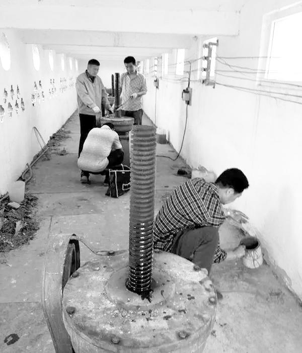 近日,扶沟县召开防汛抗旱工作会议,部署相关工作。会后,县水利局闸管所干部职工紧急行动起来,对全县所有大中型节制闸进行擦拭保养,为安全度汛奠定了基础。图为工作人员保养节制闸。记者 朱东一 摄