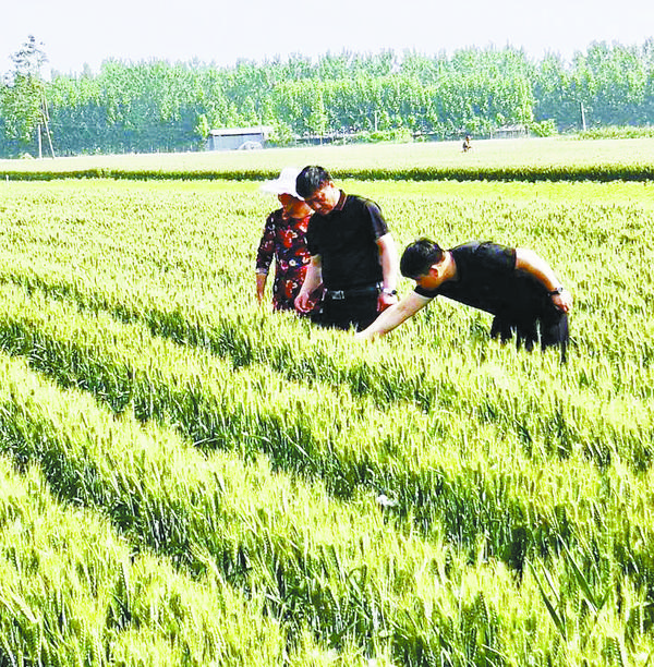 5月8日,西华县农牧局驻红花镇寇庄村工作队与该县高级农艺师闫存华到寇庄村贫困群众田间地头查看小麦病虫害发生与辣椒种植情况,并就目前小麦蚜虫等病虫害防治进行现场指导。记者 张猛 通讯员 王天福 摄