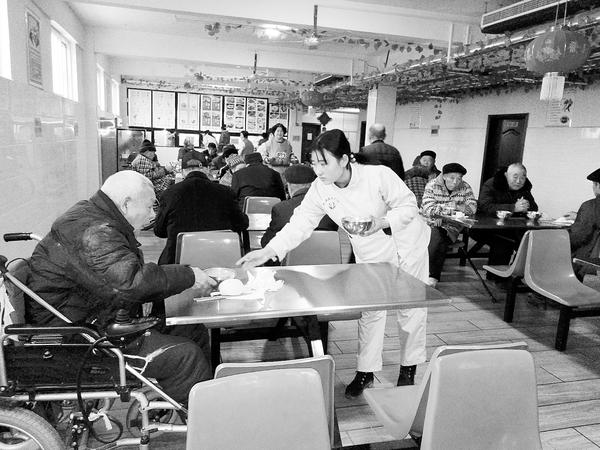 随着老龄社会的加速到来,养老问题成为每个家庭和社会共同面对的难题。商水县敬慈医院实施“医养结合”,努力为政府分忧、替子女尽孝,养老敬老成绩引人瞩目,已成为周口中心城区附近硬件设施和服务水平都很好的养老机构之一。图为工作人员在餐厅为住院老人服务。