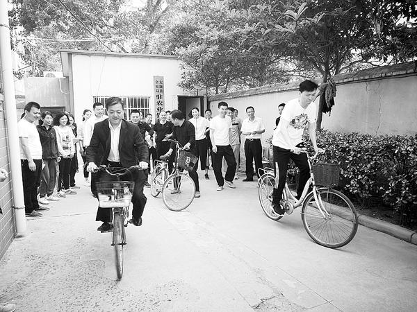 日前,农行太康支行举办了趣味运动会。本次趣味运动会设置了跳绳、转呼啦圈、慢骑自行车、二人三足、抢板凳、踢毽子等多个项目。图为慢骑自行车比赛现场。 彭涛 姚成斌 摄