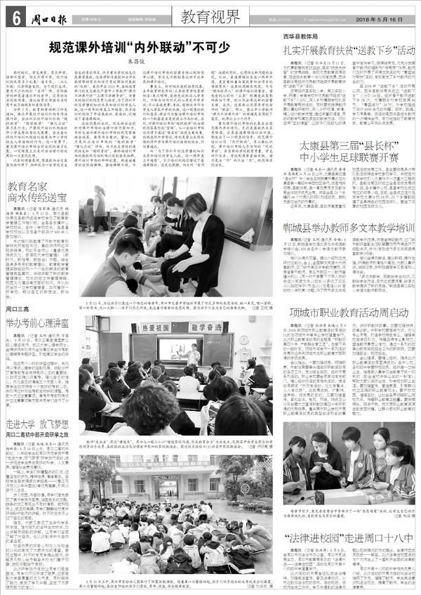 本报讯 (记者 张洪涛)5月8日,由周口市依法治市办公室、周口市司法局主办,周口市教育局承办的“法律六进——法律进校园”活动在周口市第十八初级中学隆重举行。