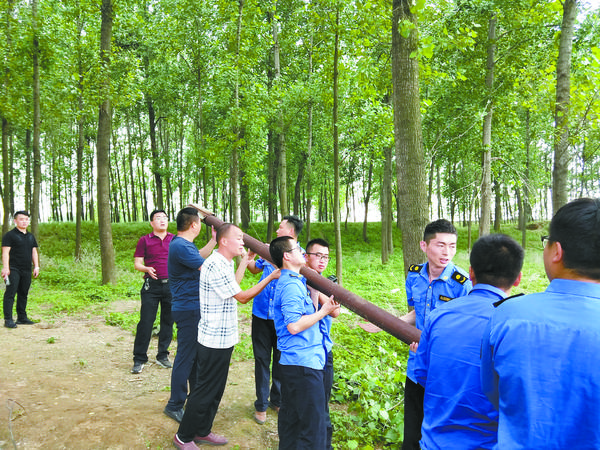 5月15日,执法人员在巡查时发现,王楼行政村的2处拦河渔网已由渔网所有人自行拆除,苑寨行政村仍有3处拦河渔网未拆除。当天下午,周口港区水利、公安、交通、城管、环保等部门联合行动,前往苑寨行政村渔网所在地,依法对拦河渔网进行拆除。3处拦河渔网均设在苑寨渡口附近,执法人员乘坐渡船,沿河将渔网铁索剪断,随后用切割机将岸边固定渔网的钢柱销毁(如图)。