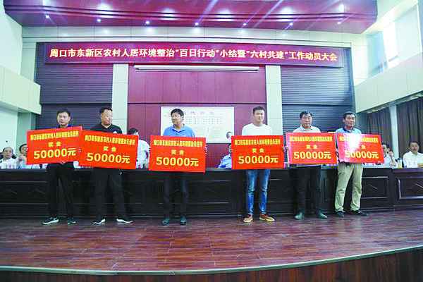 本报讯(记者 张劲松 文/图)5月14日上午,东新区召开农村人居环境整治“百日行动”小结暨“六村共建”工作动员大会。会上,该区隆重表彰了农村人居环境整治工作先进村(如图)。东新区党工委书记闫立超出席会议,管委会主任张建党主持会议。东新区副处级以上班子成员在主席台就座。区直副科级以上干部、党建联系点负责人、各乡(办)班子成员、行政村(社区)支部书记等一百余人参加会议。