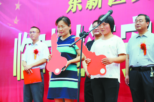 图一:临时过渡安置房交房仪式现场。