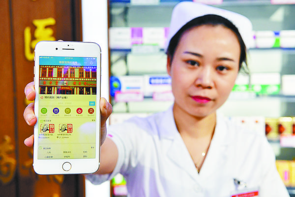 5月24日,在河南省郑州市二七区南彩路,一位工作人员在支付宝“未来药店”展示支付宝小程序中的名医预约界面。当日,全国首家支付宝“未来药店”在河南省郑州市正式营业。顾客可以享受刷脸自助支付、远程健康咨询、名医预约、信用免押金租赁、电子社保卡支付、24小时自助售药等服务。
