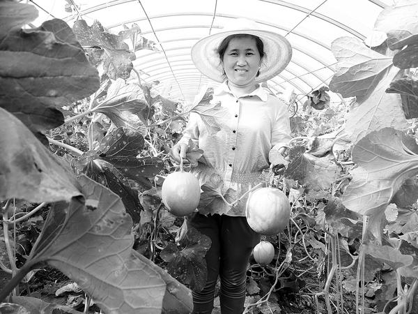 5月24日,沈丘县周营镇马营村一处现代农业示范基地,瓜农陈伟笑盈盈地向客户“显摆”即将采摘销售的订单吊蔓薄皮甜瓜。近年来,该县积极发展设施农业,并通过土地流转、技术指导和贴息贷款等优惠政策,对农户、农民专业合作社或涉农企业进行引导、扶持,实现了农业增效和农民增收。 谢辛凌 摄