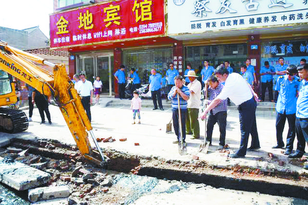 这几天,在西华县城许多街道,随处能看到施工人员紧张作业的场面。雨季即将到来,为防止城市出现内涝,该县城管部门未雨绸缪,对城区下水道全面展开排水清淤工作。记者 张猛 摄
