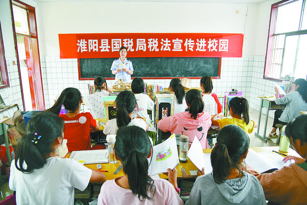 5月28日,县国税局税法宣传队走进黄集乡遇佛寺小学和蔡洼小学,送去小学税法知识读本,和小朋友一起诵读税收“三字经”,使小朋友们明白了税收“取之于民、用之于民”的道理。 记者 侯俊豫 摄