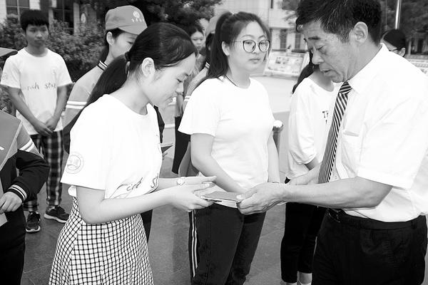 6月4日,淮阳中学为该校高三毕业生精心准备了一场毕业典礼。图为淮阳中学校长高远征为学生颁发高中毕业证书。 记者 刘华志 摄