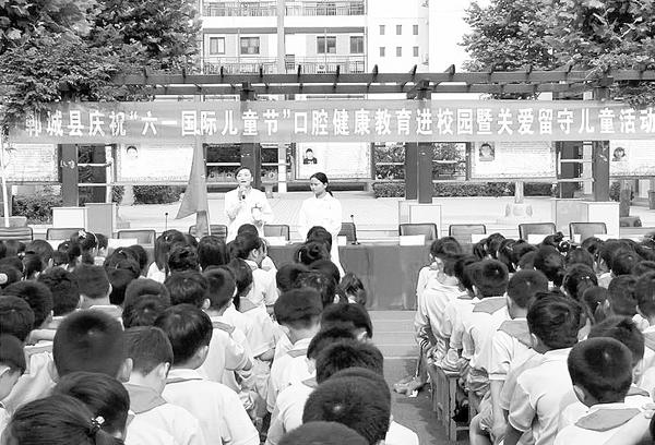 5月31日上午,郸城县卫计委、县疾控中心到该县第三实验小学,举行口腔健康教育进校园暨关爱留守儿童活动,现场发放了口腔健康知识宣传页和口腔健康指南,并向学校赠送了300套牙具。