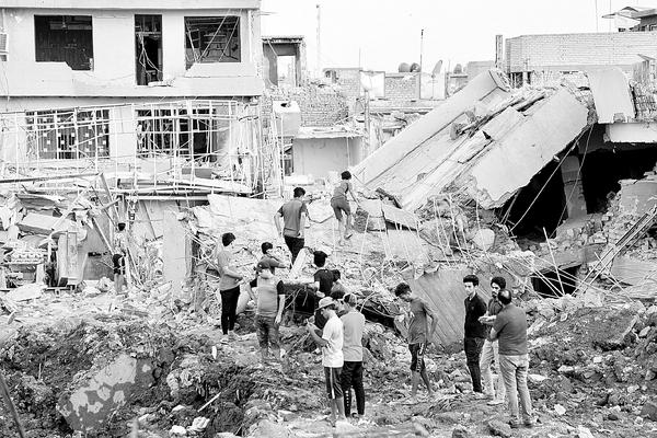 6月7日,在伊拉克巴格达东部萨德尔城,人们聚集在爆炸现场。