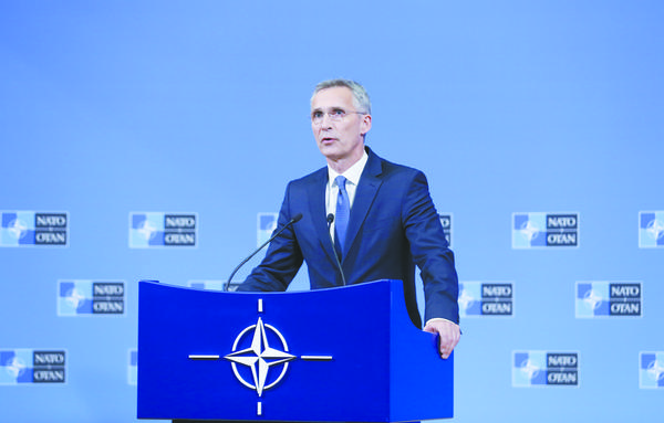 6月7日,在位于比利时布鲁塞尔的北约总部,北约秘书长斯托尔滕贝格举行新闻发布会。 北约秘书长斯托尔滕贝格7日宣布,北约将在美国和德国增设司令部。新华社发