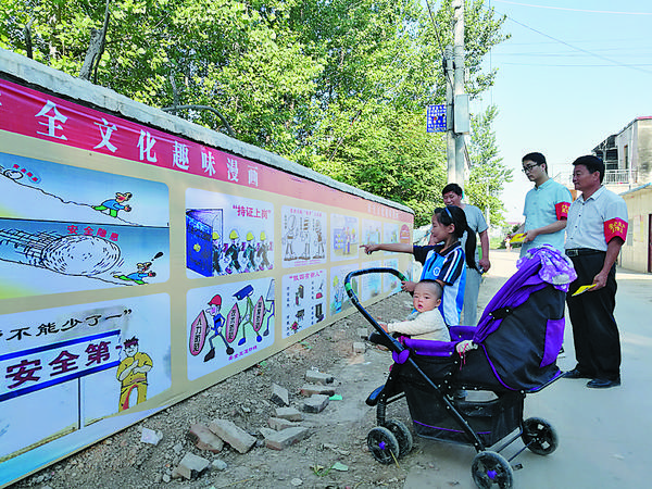 安全生产文化墙引得社区居民驻足观看。