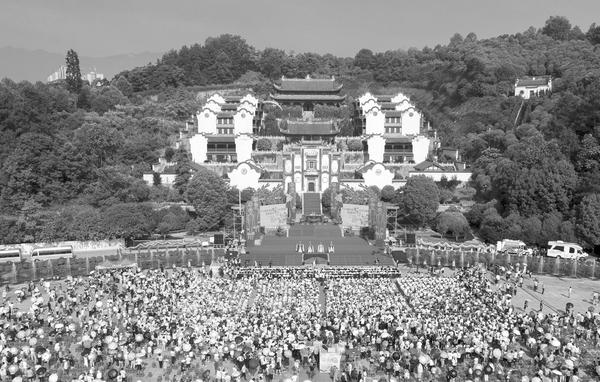 (本栏文图均为新华社发) 这是6月15日在秭归县屈原祠拍摄的2018屈原故里端午文化节开幕式现场。当日,2018屈原故里端午文化节在湖北省宜昌市秭归县开幕,各地民众万余人齐聚长江边,缅怀屈原,体验端午习俗,迎接端午佳节。