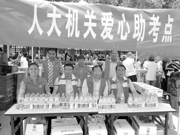 6月7--8日,太康县人大机关组织12名工作人员参加2018年“爱心助考”活动,在助考点免费为考生提供矿泉水100件,文具、避暑药品等若干,提供服务考生轿车6辆。记者 马治卫 通讯员 刘卫亚 摄