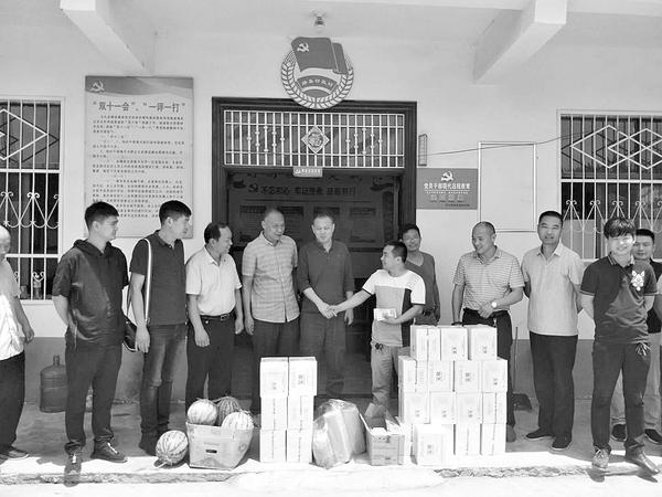 端午节前夕,周口市人大代表、郸城中州国际酒店董事长申宗奎,在郸城县委统战部副部长、工商联党组书记韩大力,工商联主席范新德,以及虎岗乡长赵强等陪同下,带着慰问金和50份瓜果、矿泉水、毛巾、香皂等慰问品,对驻在虎岗乡的所有驻村第一书记和驻村工作队员进行慰问。记者 徐松 通讯员 王忠仆 摄