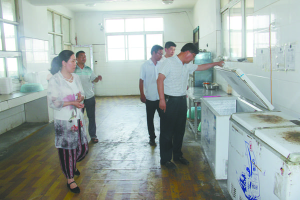 在李埠口一中,张东立认真查看了学校食堂前厅、后厨、储藏室,详细查看了餐饮设备、烹饪原料、食用油等,并对食堂冰箱一一检查。在督察过程中,发现餐厅地面油污严重,后厨苍蝇较多,操作台灰尘、抽烟机油渍久未清理,熟食没有及时遮盖等问题,张东立对该校食堂问题提出严厉批评,责令相关责任人限期整改。