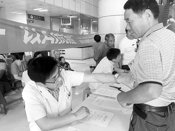 日前,周口市中医院携手全球顶级医疗人工智能平台Watson开展父亲节大型义诊活动,把对父亲的爱带到患者中。作为我省首批引入Watson肿瘤解决方案的医院,周口市中医院与百洋智能科技签约成立了Watson智能肿瘤会诊中心,目前已为多名肿瘤患者提供了权威、规范的治疗方案。图为医生为群众检查身体。