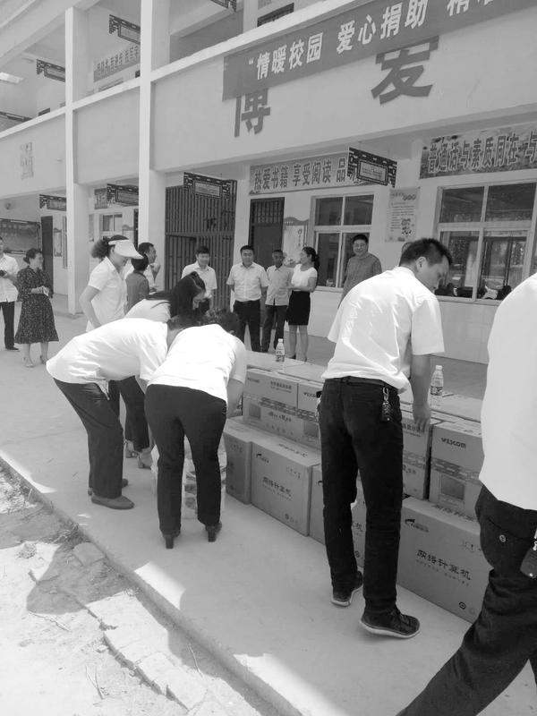 本报讯 (记者 韩志刚 通讯员 李锦智 文/图) 为深入贯彻党的十九大精神及习近平总书记系列重要讲话精神,近日,邮储银行周口市分行党委书记、行长杨怀峰带领党群工作部员工到帮扶点太康县独塘乡张汉楼村小学,开展了“情暖校园 爱心捐助 精准扶贫 助力教育”捐助活动,为该校捐献20台电脑(如图)。独塘乡党委书记李然增、张汉楼村小学师生参加了捐助仪式。