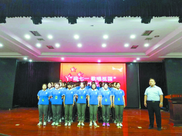 为庆祝建党97周年,我市各中小学校举行形式多样的迎“七一”活动。图为我市中心城区一所学校举行的迎“七一”歌咏比赛现场。郭志付 摄