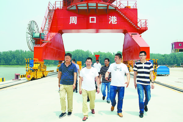 周口中心港码头相关负责人还与来宾进行了座谈,宿迁港、灌河港企业相关负责人结合各自运营情况,为周口中心港的发展提出合理化的建议。对于周口发展临港经济、打造中原港城的战略规划,尤勇说:“依靠港口繁荣一座城市、改变一座城市的发展思路是正确的。水运具有价格低廉的优势,适合大宗商品运输,作为中原内陆城市,周口及周边运力需求大,周口中心港周边300公里范围内没有大型港口,周口港区以中心港为核心,发展临港经济,打造多式联运交通枢纽,前景广阔。”