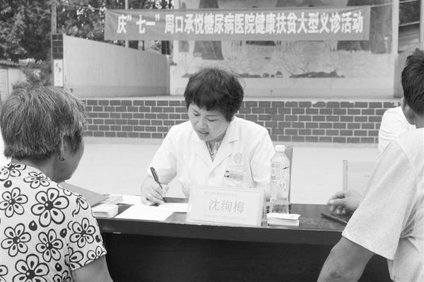 6月30日,周口承悦糖尿病医院到商水县谭庄镇三李村开展健康扶贫大型义诊活动,用实际行动向党的97岁生日献礼。图为义诊现场。 记者 李立 摄