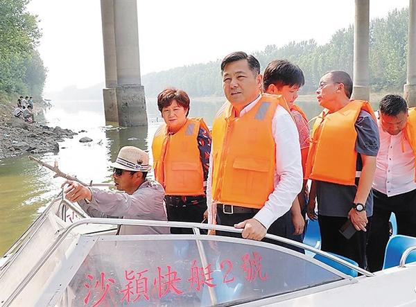 县政协主席郭峰、副主席唐金华到贾鲁河整治项目城区段调研水污染治理工作。