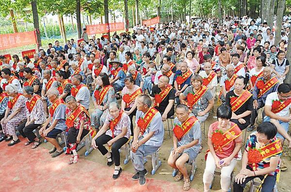 6月29日上午,太康县转楼乡褚庄行政村李子其村小树林下锣鼓喧天,唢呐声声,鞭炮齐鸣,24名孝顺儿子(儿媳)、孝顺侄子(侄媳)披红戴花,满面红光,太康县“接父母(亲人)回家活动”启动仪式在这里温暖举行。县委副书记、政法委书记王程清,县人大常委会主任张思民,县委常委、宣传部长谢成营,县政府副县长张国庆,县政协副主席、民政局局长刘凤芹等领导出席了活动。