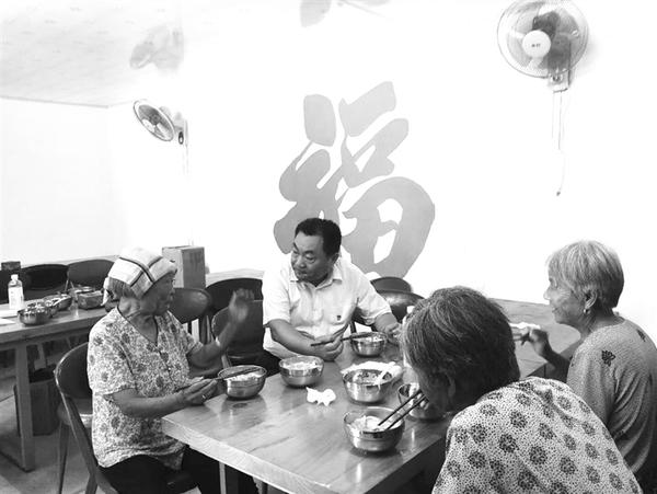 在槐寺村幸福院,当王国玺走进幸福院议事厅时,94岁的周张氏和谢宗彬等老人正在客厅聊天。王国玺与老人们一一握手,促膝交谈,嘘寒问暖,详细询问老人们的身体健康状况、生活情况等,认真听取他们的意见和建议。王国玺还实地查看了老人宿舍、食堂、幸福院菜园等硬件设施,详细了解幸福院日常管理以及老人们的生活起居等情况,征求镇、村干部的意见和建议,鼓励工作人员爱岗敬业、无私奉献,让每一位老人都能感受到党和政府的关怀及温暖。中午时分,王国玺与老人们坐在一起共进午餐,向老人们送上关怀和祝福。“您今年高寿?身体还好吗?”一句句情真意切的话语,一声声发自肺腑的祝福,让老人们感动不已。现场欢声笑语、其乐融融(右图)。